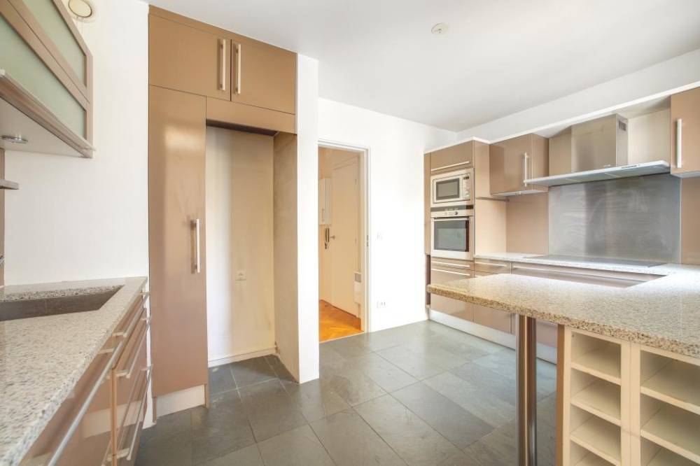 De très beaux volumes, nombreux rangements, balcons tout le long de l’appartement offrant une belle entrée avec dressing, placards, un somptueux séjour de 38m2, une jolie cuisine équipée aménagée semi-ouverte comprenant un espace fonctionnel et convivial.
