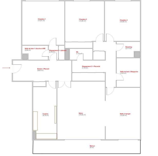 5 pièces, 3 chambres, 2 SDB