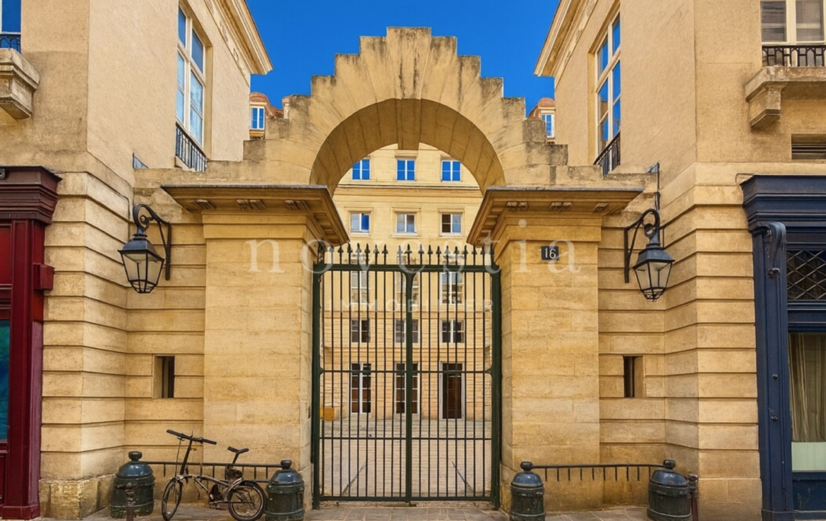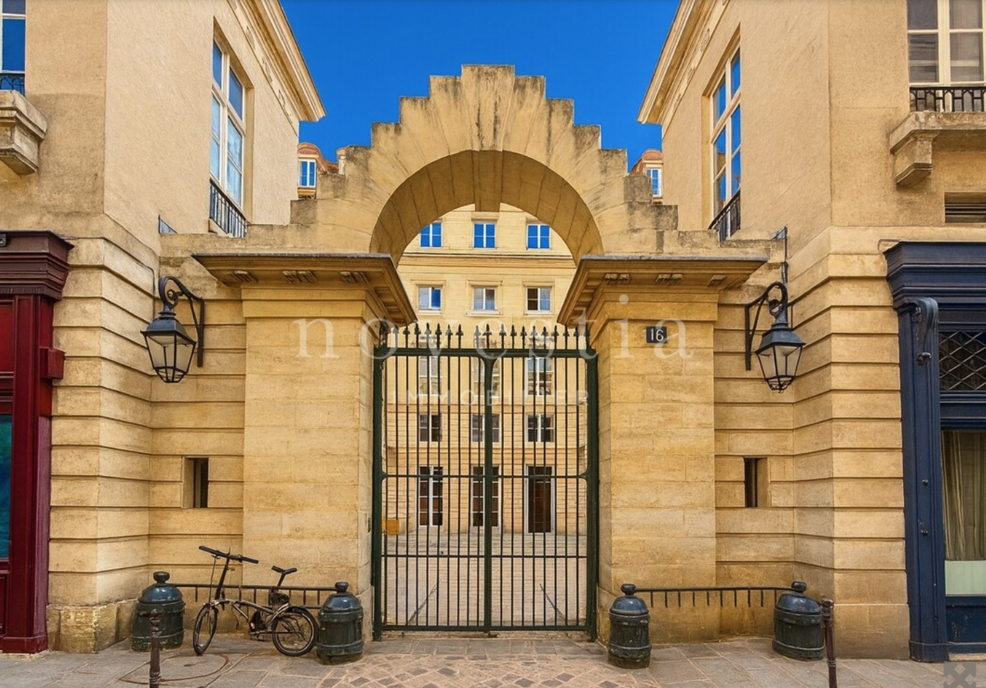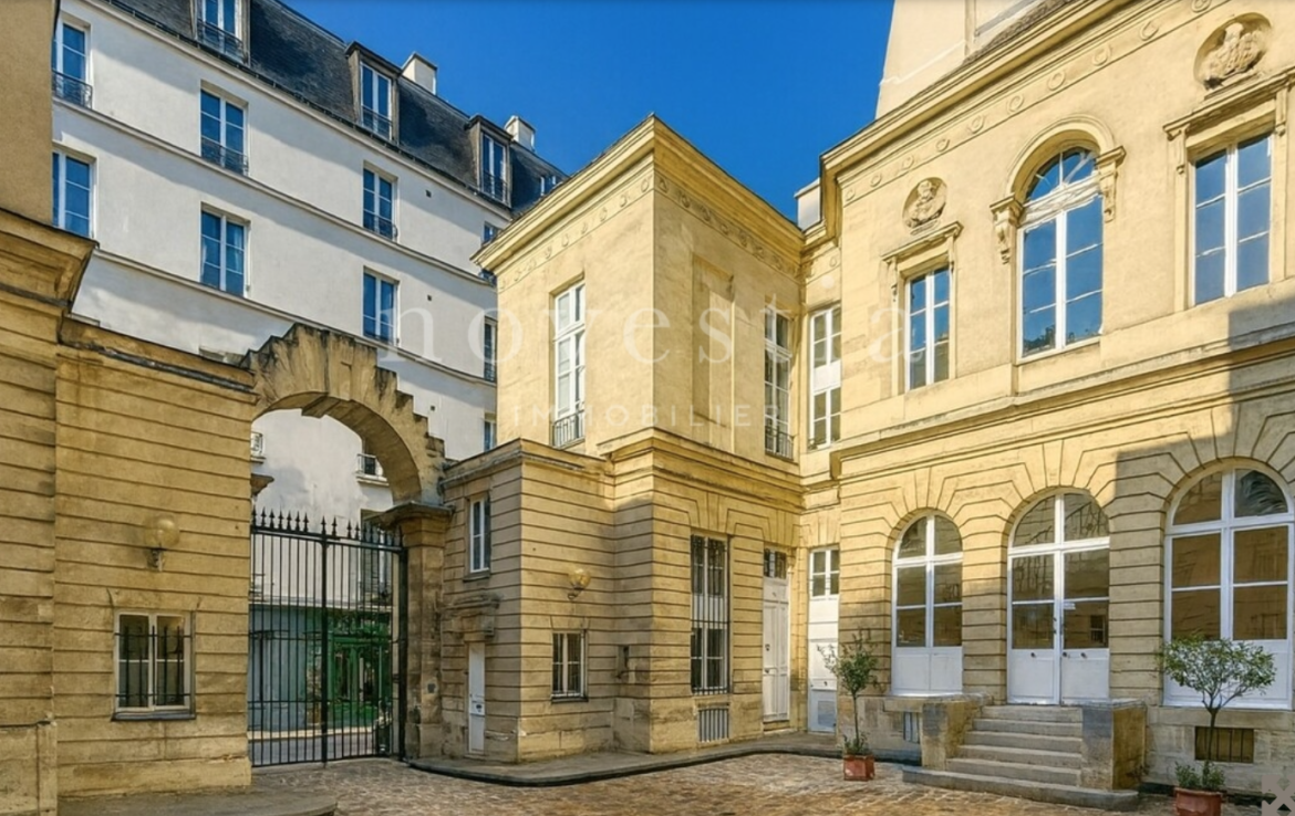 • PARIS 3 – QUARTIER MARAIS – RUE DU PARC ROYAL – Au sein d’une belle copropriété de standing, au troisième étage d’un immeuble modernisé dans les années 1980 avec gardien et ascenseur, appartement de 93,06 m² Carrez (93,51 m² au sol). Il comprend : une entrée, un double séjour donnant sur une cour d’honneur, une cuisine dinatoire, une chambre, une salle de douche avec WC, ainsi que des WC séparés. Possibilité de réaménager le plan en deux chambres. Appartement exposé sud, lumineux, calme, bénéficiant de double vitrage et de nombreux rangements. Une cave complète ce bien. Possibilité de parking dans la copropriété.