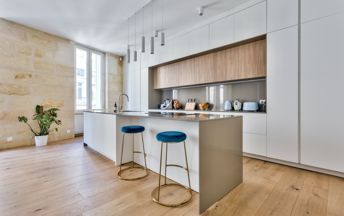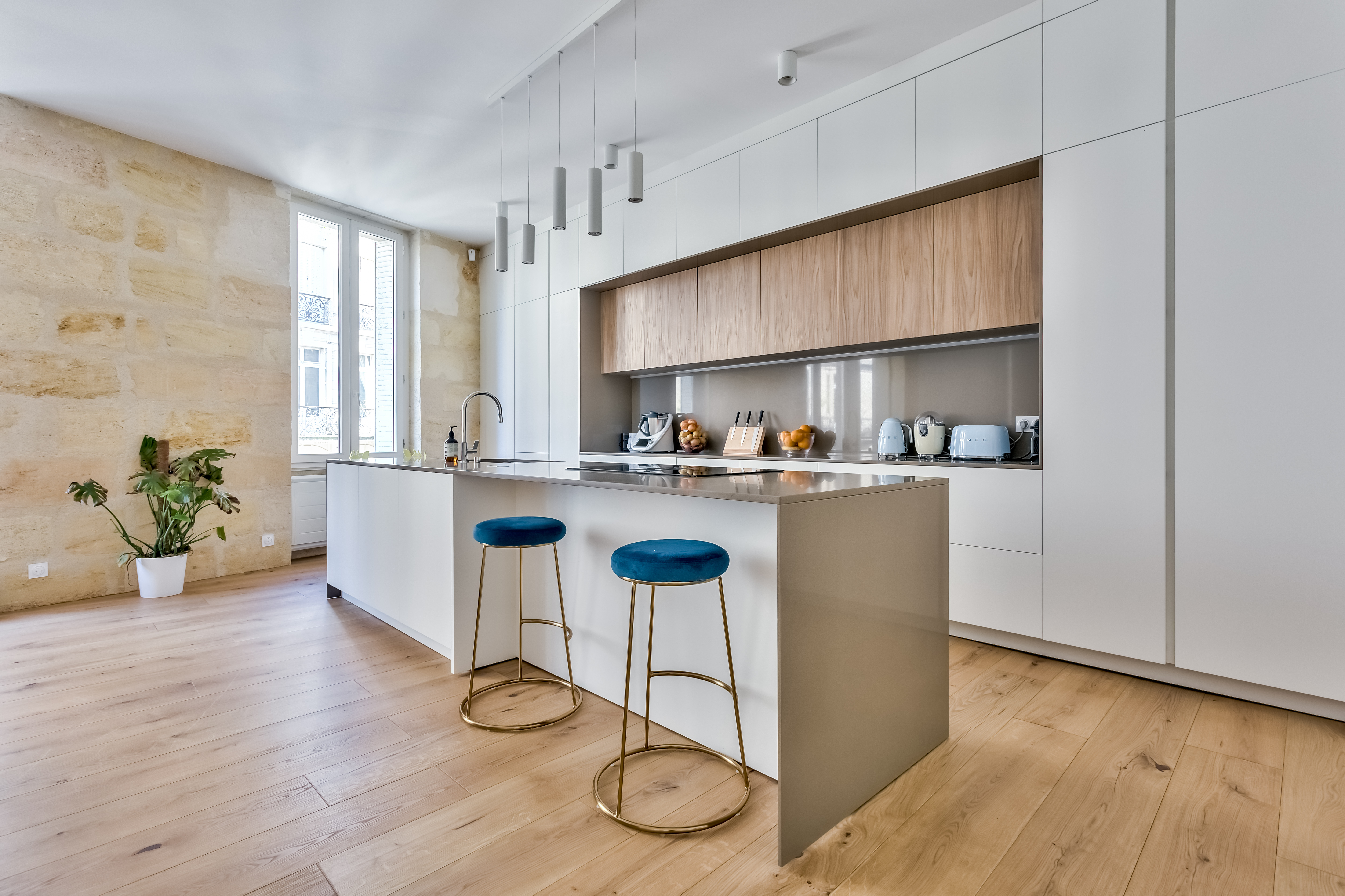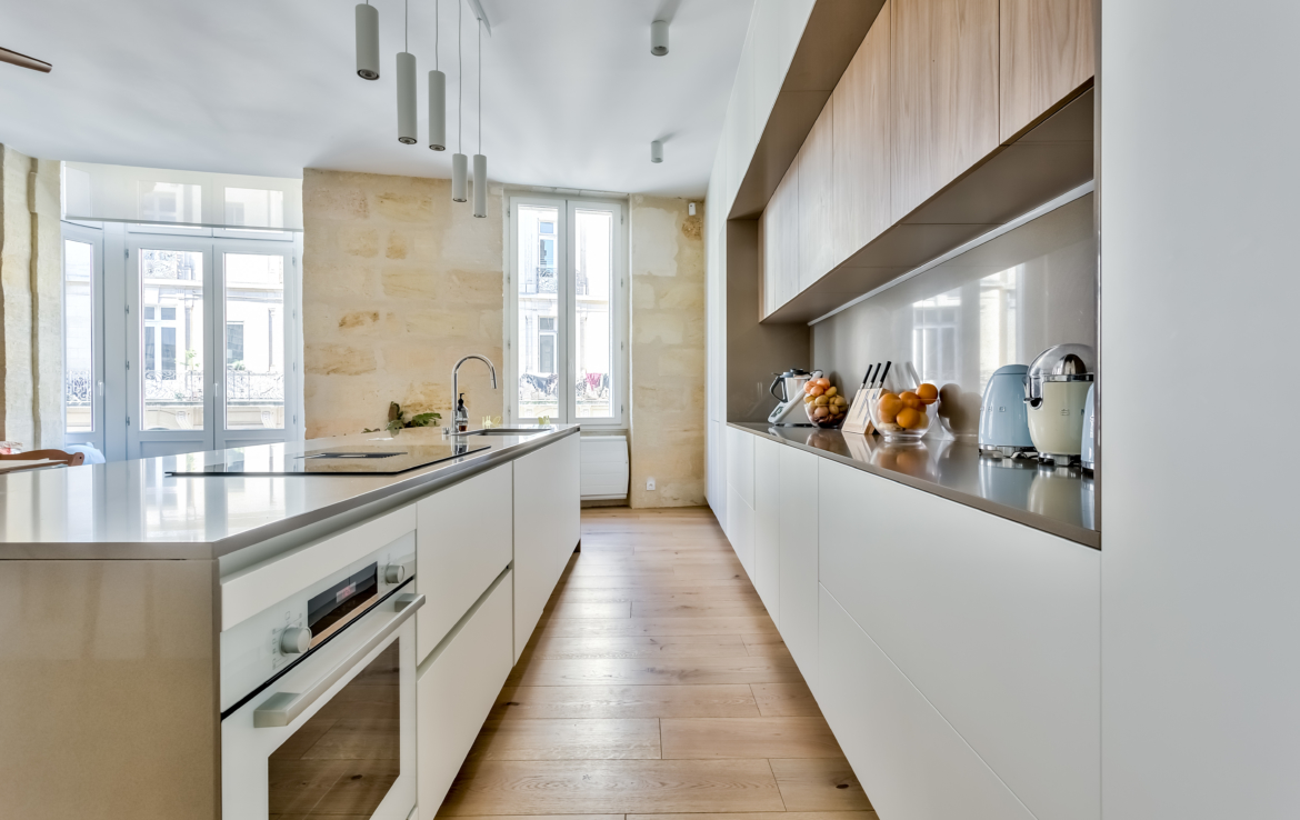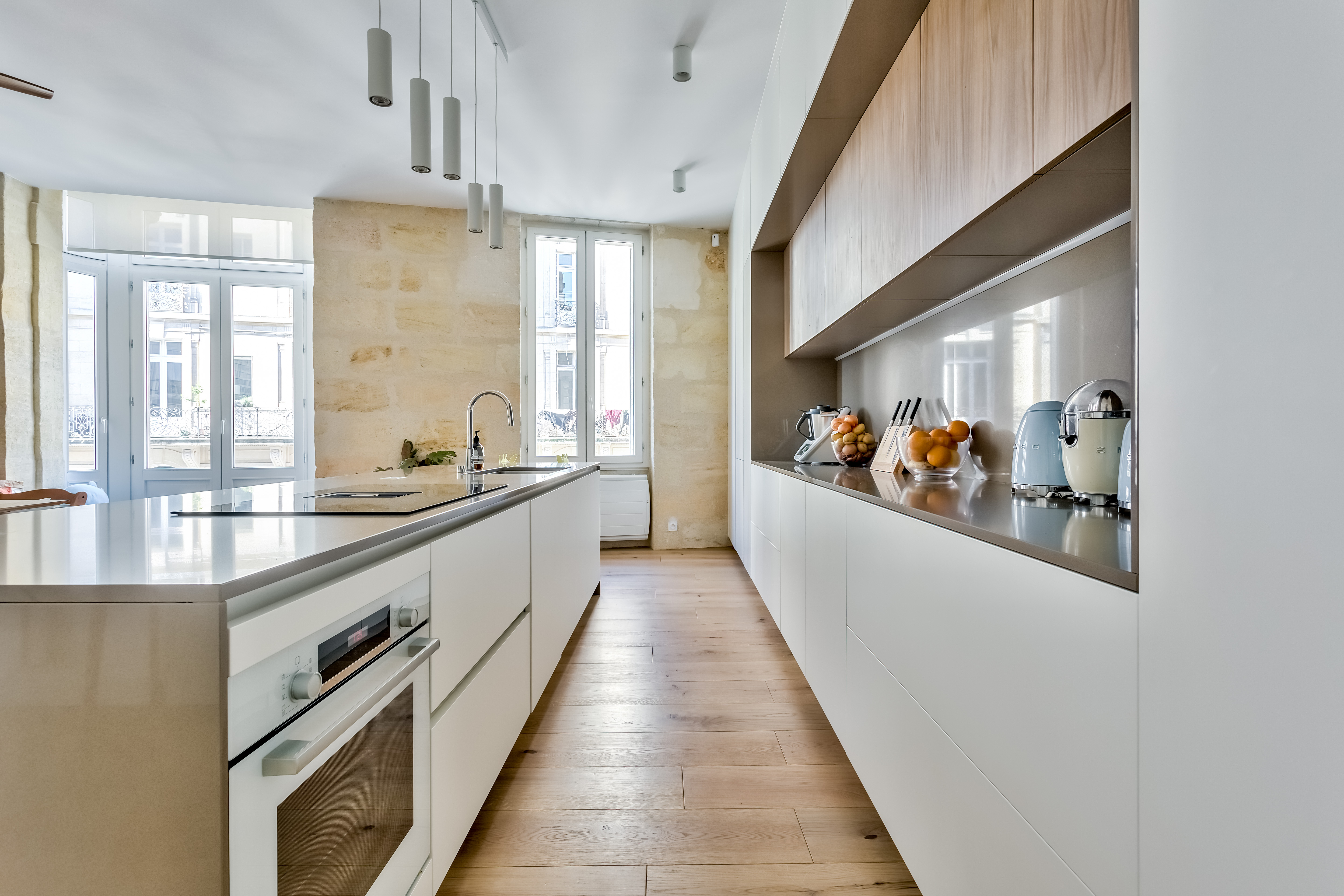 Bordeaux Centre – Nous vous proposons ce très bel appartement entièrement rénové d’une surface de 108,23m² Loi Carrez au deuxième étage d’un très immeuble en pierre en très bon état. Ce bien au style épuré se compose d’une grande pièce de vie de 65m² benéficiant d’une cuisine aménagée et équipée avec un bel espace dinatoire et offrant un salon spacieux. Vous trouverez une première chambre de 20m² bénéficiant d’un dressing et d’une salle de bain privative. Un second espace nuit séparé propose une deuxième chambre avec sa salle d’eau privative et de grands placards aménagés. Beaux volumes, nombreux rangements, matériaux de qualité. Chauffage individuel avec radiateurs à inertie. Une cave complète ce bien. L’immeuble ainsi que les parties communes sont en parfait état. Aucuns travaux de copropriété à prévoir. A proximité des commerces et du Tramway (1 minute à pied).