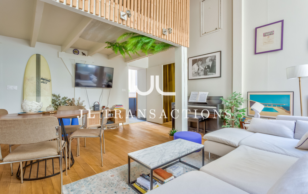 Cet appartement dispose d’une belle pièce de vie avec mezzanine , d’une cuisine séparée aménagée donnant sur une terrasse, la cuisine bénéficie d’un cellier, d’une chambre donnant sur une seconde terrasse, d’une salle de douche, de WC séparés ainsi que de d’un espace dégagement / buanderie.