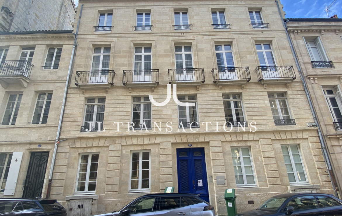 Opportunité rare rue Boudet, entre le Jardin Public et la Place des Quinconces ! Venez découvrir ce T2 d’une superficie de 46 m², situé au 1er étage (sur 4) d’un bel immeuble en pierre de 12 lots d’habitation (9 appartements et 3 bureaux). Situé dans une rue très calme, ce bien (Lot 6 sur plan) offre de belles prestations dans un quartier prisé. Une cave vient compléter l’appartement.