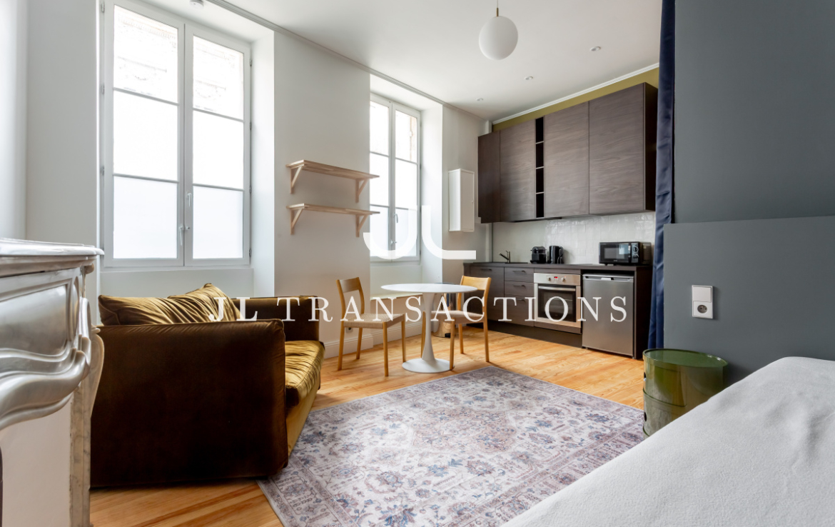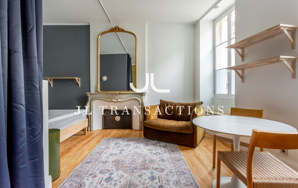 Découvrez cet appartement entièrement rénové, à quelques pas de l’arrêt de tram Croix-de-Seguey (D). Composé d’une pièce de vie avec cuisine aménagée et équipée (réfrigérateur, plaques de cuissons, four) avec de grands rangements, d’un espace dressing avec machine à laver, d’un coin nuit séparé grâce à un rideau sur rail et d’une salle d’eau avec wc. Parquet, cheminée, hauteur sous plafond de 3 mètres… Très belle remise en valeur des prestations anciennces. Deux grandes fênêtres en double vitrage.