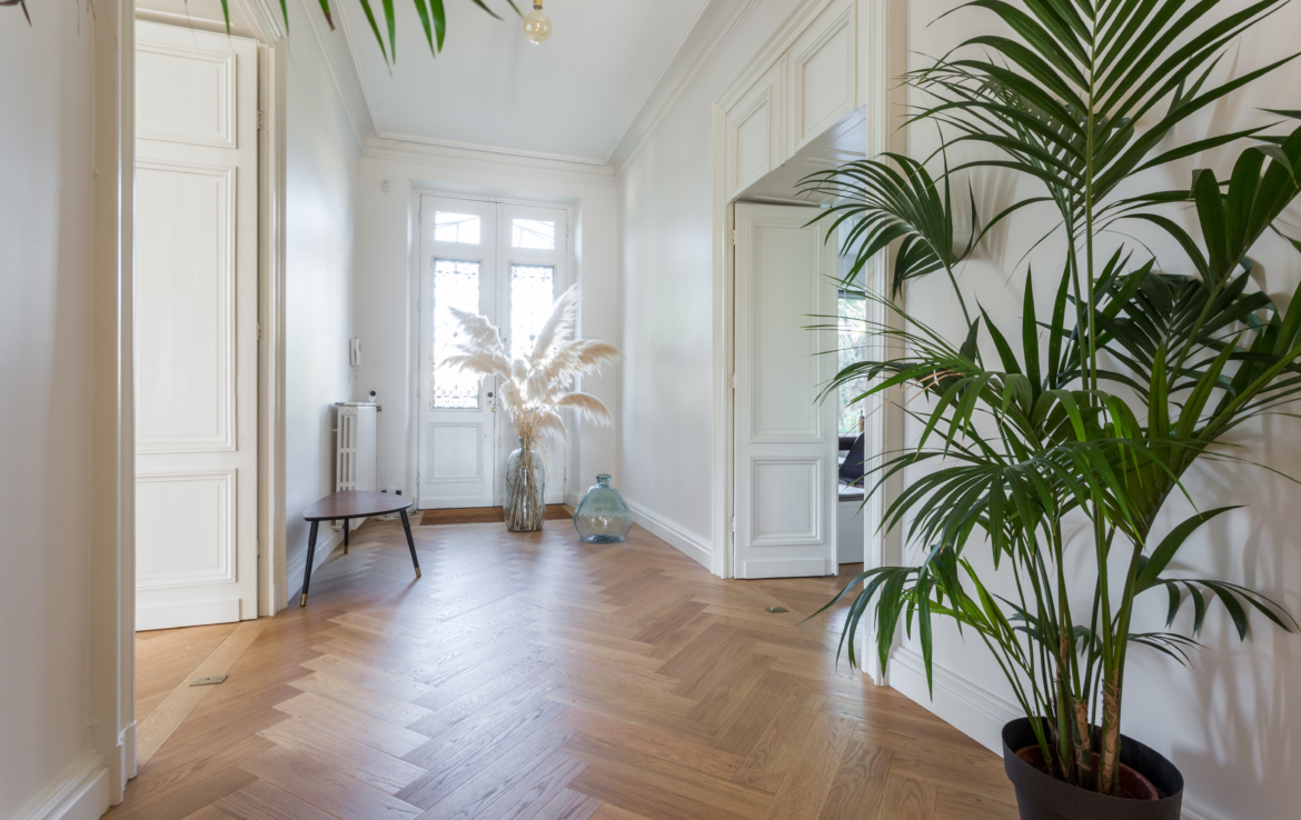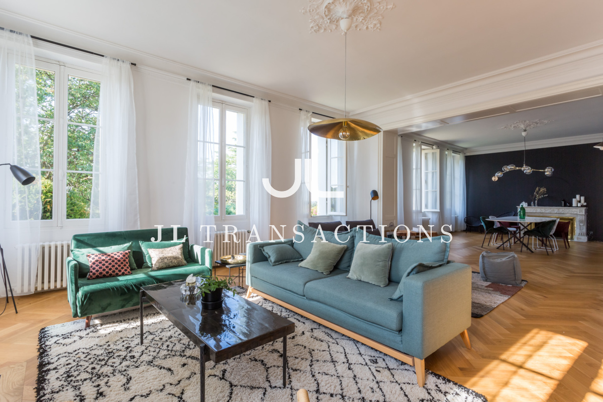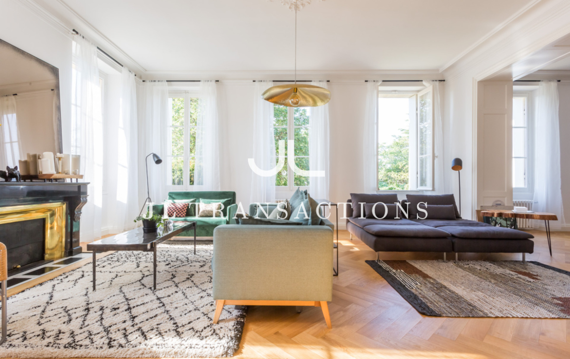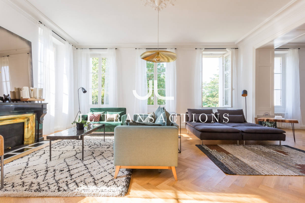 Très bien agencée et pensée pour une vie familiale et de réception, la maison offre des volumes très lumineux grâce à sa triple exposition: Est- Ouest – Sud. Elle se compose d’une double entrée, d’une pièce d’accueil / bureau, une pièce de réception de 70 m², très par lumineuse. Une vaste cuisine dînatoire de 28 m² complète l’espace de vie.
