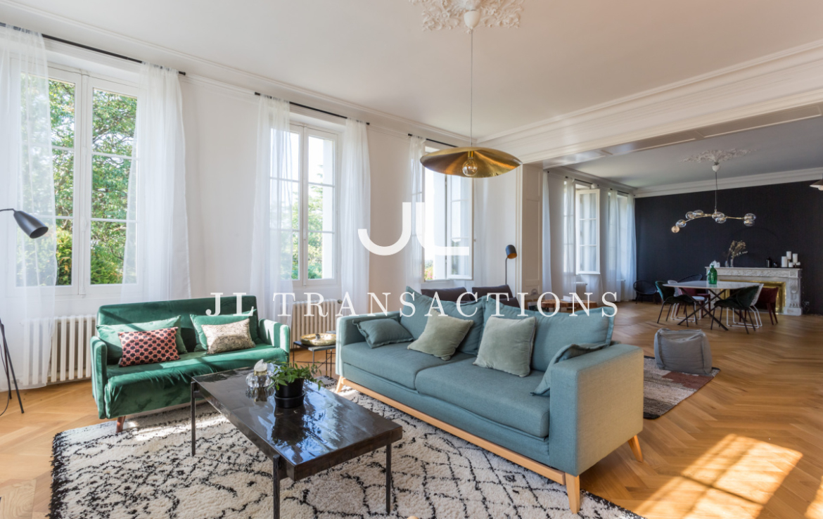 À l’extérieur, le parc offre un cadre majestueux. Une dépendance rénovée de 85 m² — ancienne maison de gardien — ainsi qu’un garage attenant de 100 m² complètent la maison.