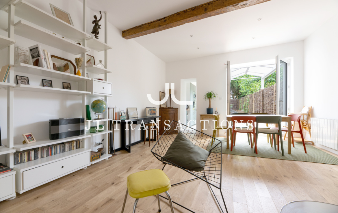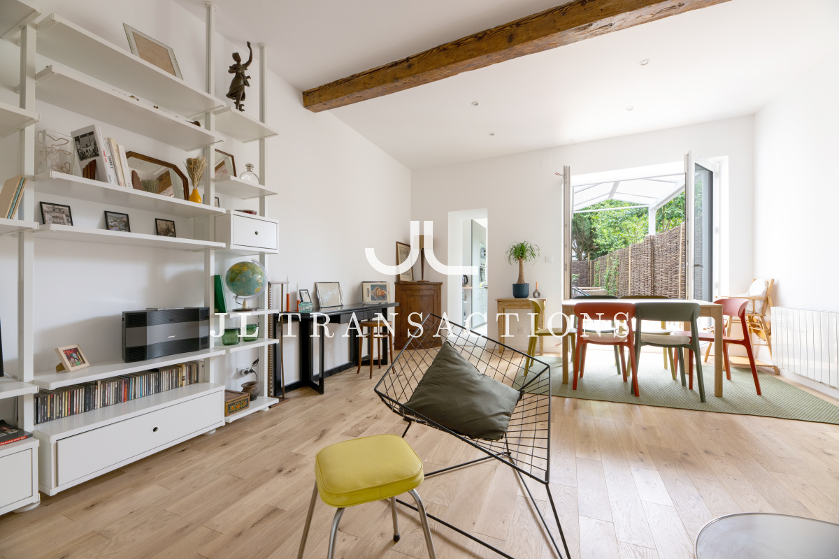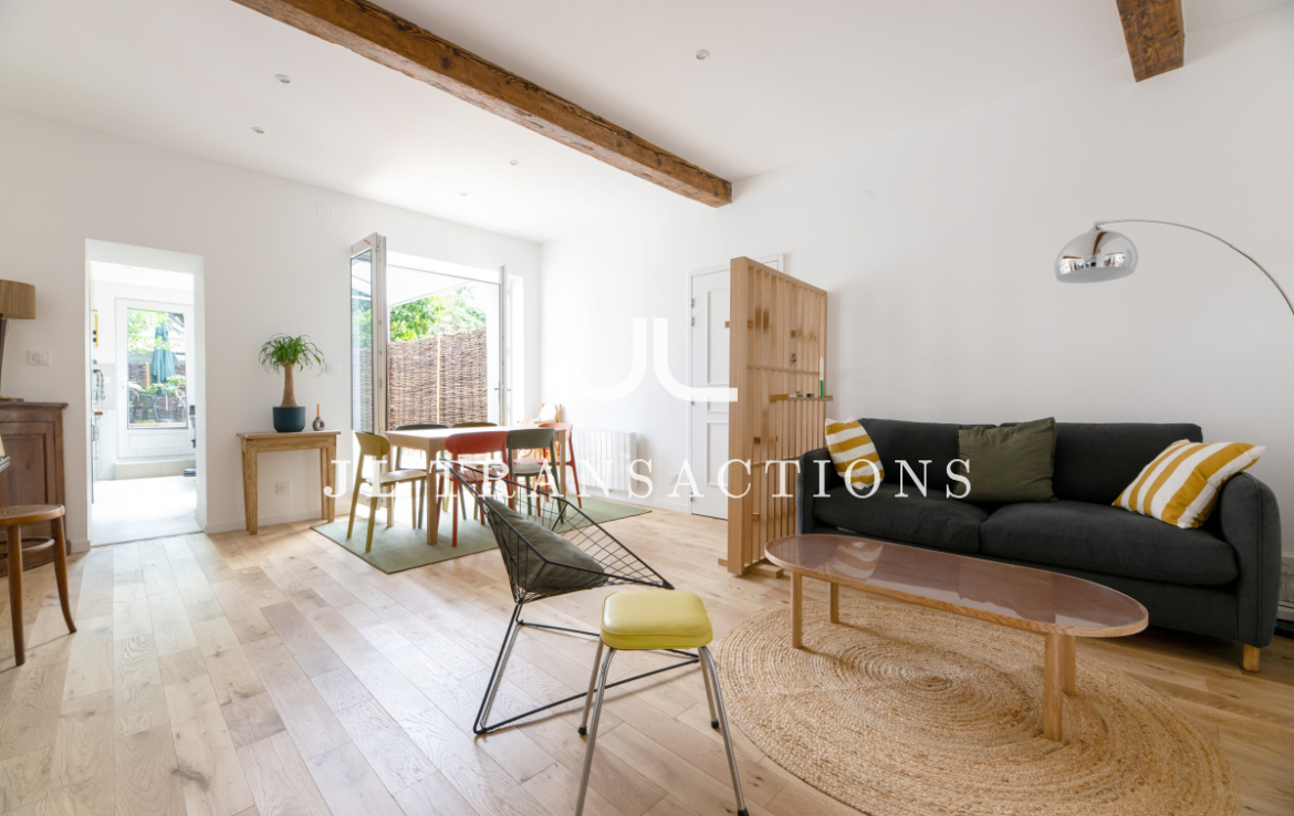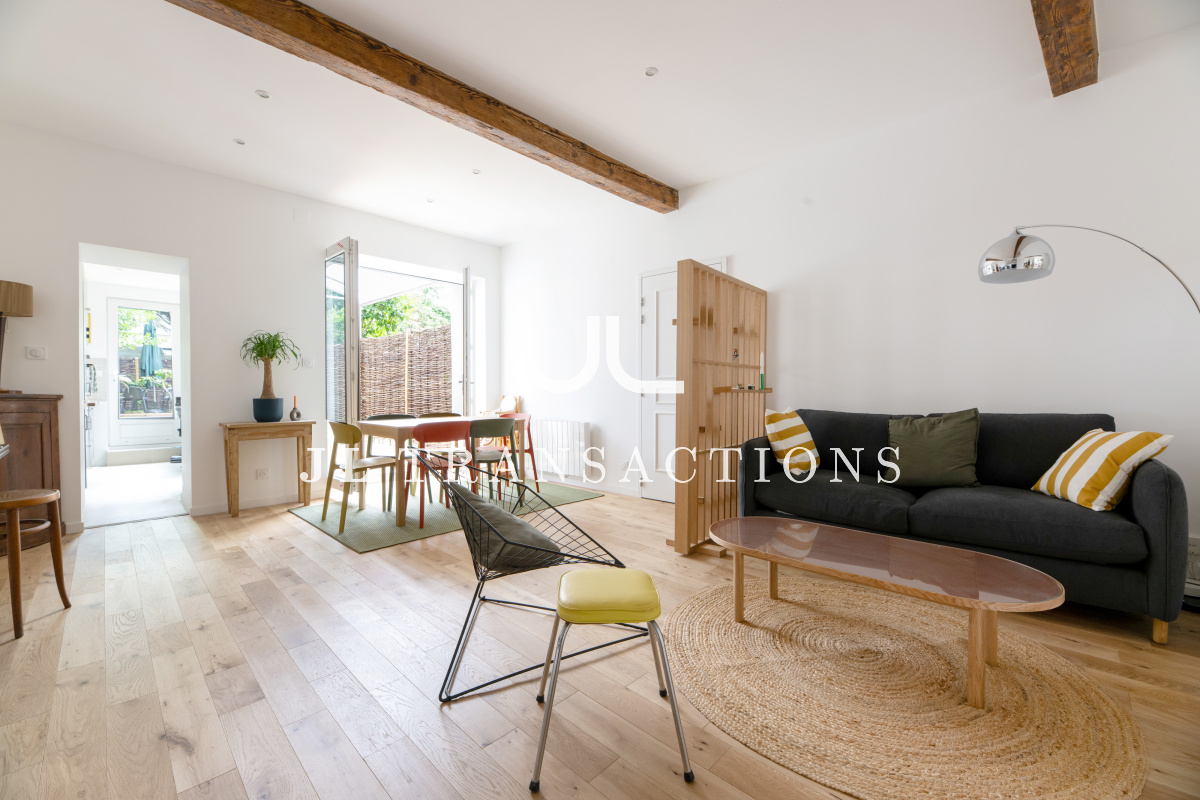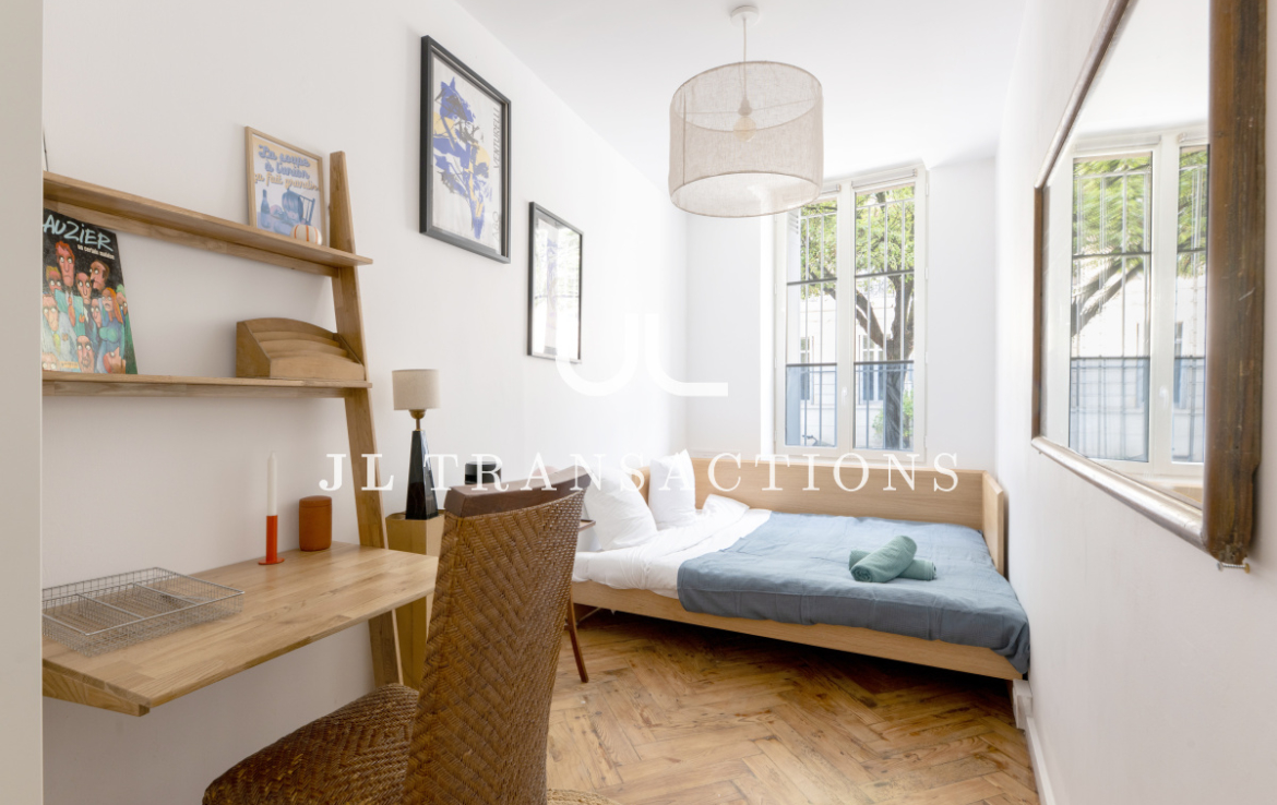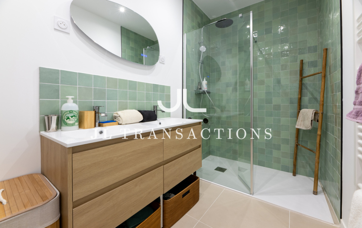 Entièrement rénové, il se compose d’une pièce de vie avec espace dînatoire, d’une cuisine séparée entièrement aménagée et équipée (four, plaques de cuisson, hotte, réfrigérateur/congélateur, lave-vaisselle), deux chambres, d’une salle d’eau (avec double vasque, machine à laver et sèche-linge) et de wc séparés.
