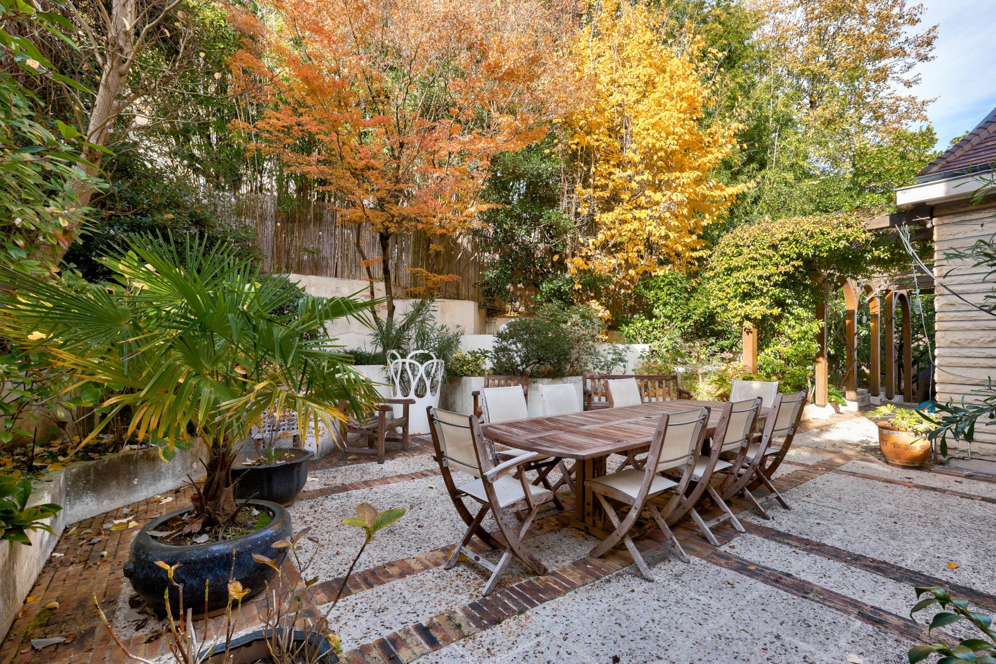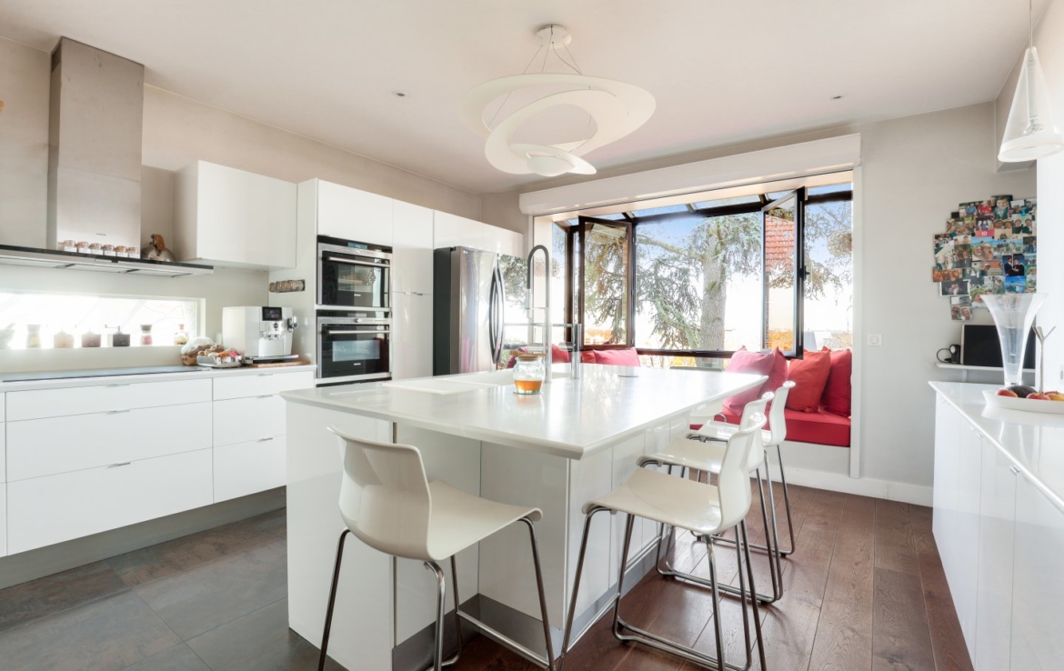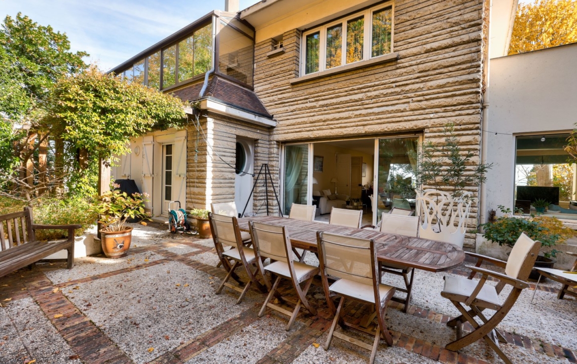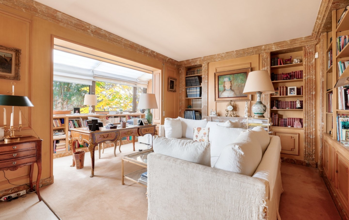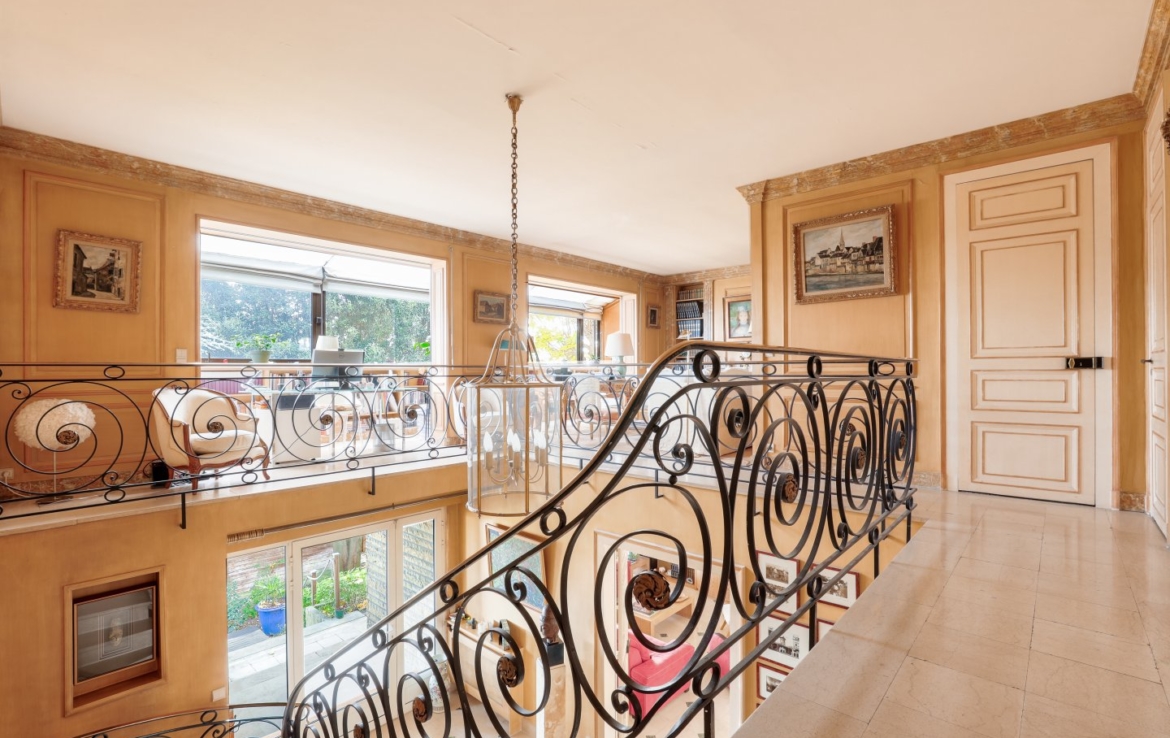 Nichée dans un écrin de verdure et à l’abri des regards, cette maison familiale et de réception séduit par sa luminosité, ses volumes généreux et sa vue exceptionnelle sur Paris et la Tour Eiffel.