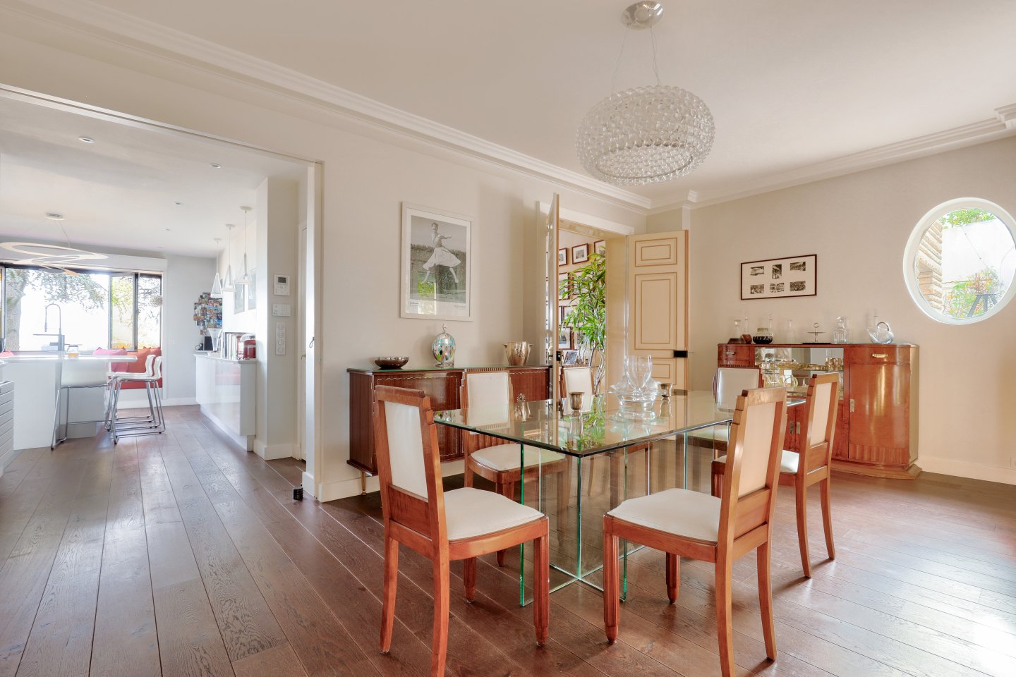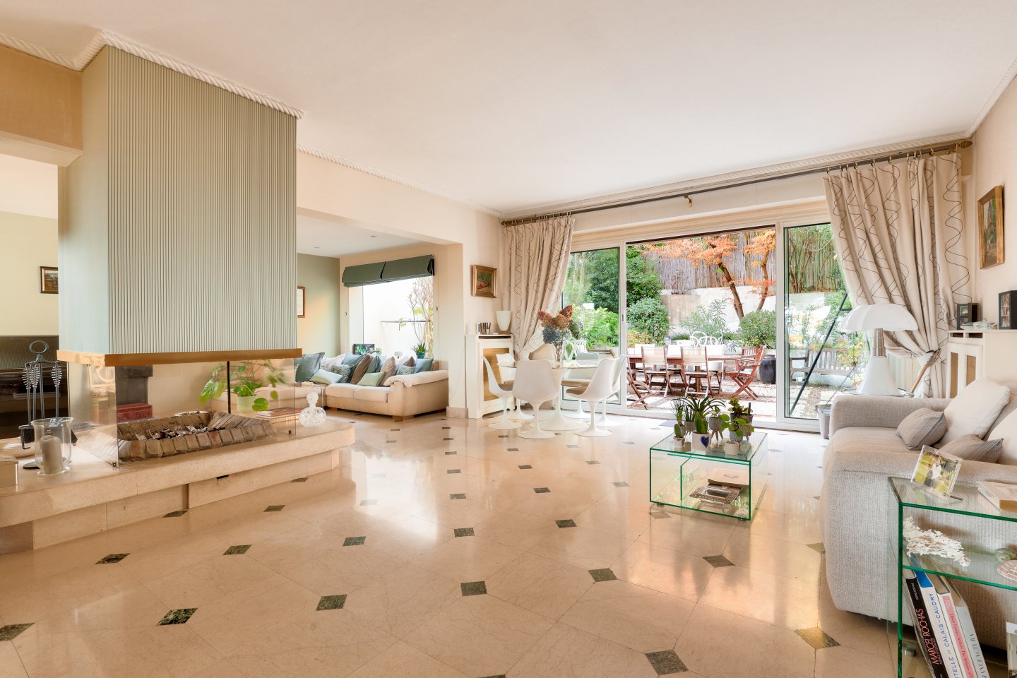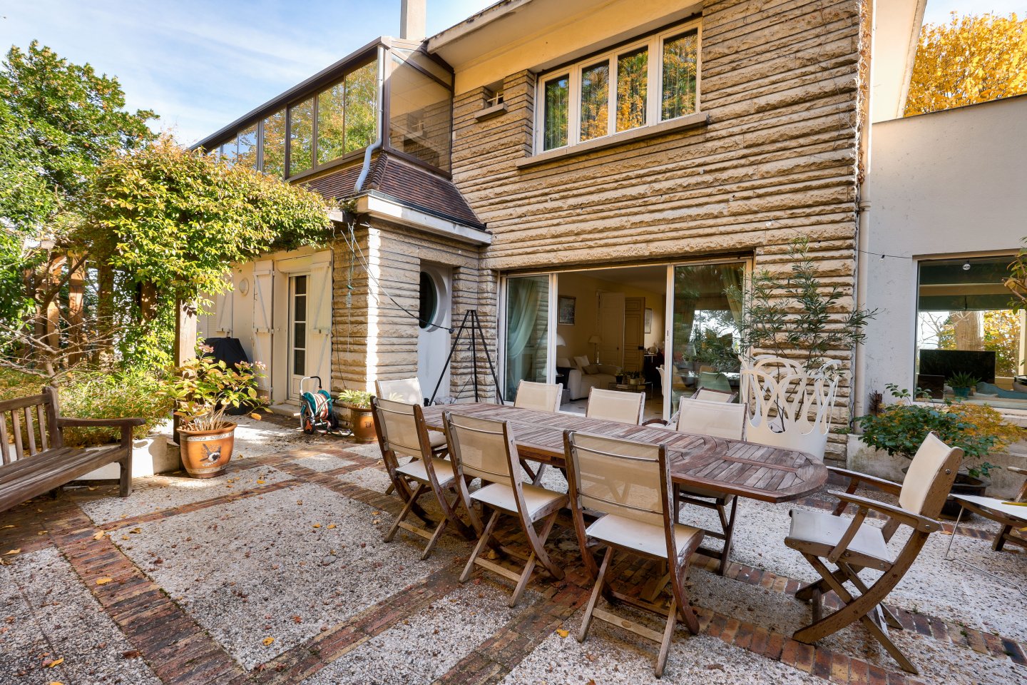 Nichée dans un écrin de verdure et à l’abri des regards, cette maison familiale et de réception séduit par sa luminosité, ses volumes généreux et sa vue exceptionnelle sur Paris et la Tour Eiffel.